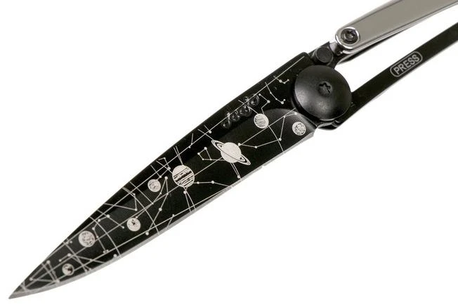 Deejo Tattoo Gold Black 27g, White Gold Gilded, Astro DJ9GM000022 Pocket Knife