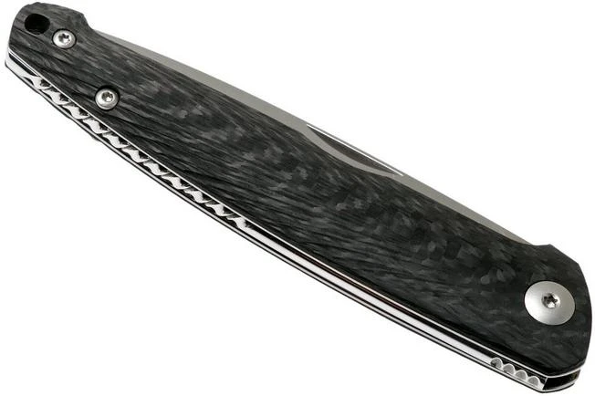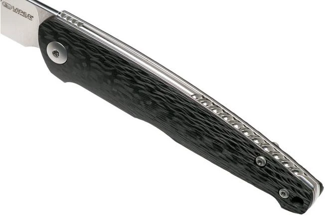 The Viper Key V5976D3FC Milled Carbon fibre is a stylish gentleman’s knife, designed by Jesper Voxnaes. His typical and unique design style is clearly reflected in this remarkable gentleman’s knife. There is almost no straight line in sight. All shapes, lines and details match and form a harmonious whole. The slim design is very appealing and turns it into a perfect gentleman’s knife for anyone who loves wearing a fancy outfit.