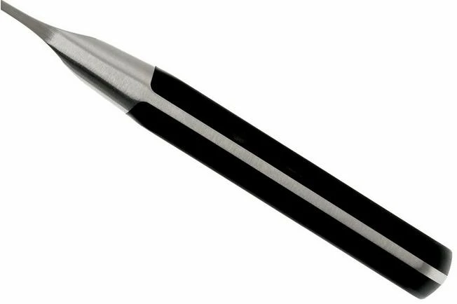 The kitchen knives from the Pro collection are enhanced with a blade that is forged from one piece of steel. The full tang blade seamlessly merges with the plastic handle. The handle is secured to the steel with three rivets. The transition between the handle and steel is seamless. No dirt can accumulate in between. These knives are enhanced with a classic design and appeal to those who prefer heavier knives.