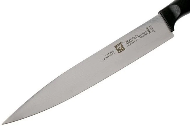 The Zwilling Life carving knife is enhanced with a long, narrow blade. Perfect when cutting pieces of ham or other large pieces of meat. Or to cut thin slices of carpaccio, for instance.
